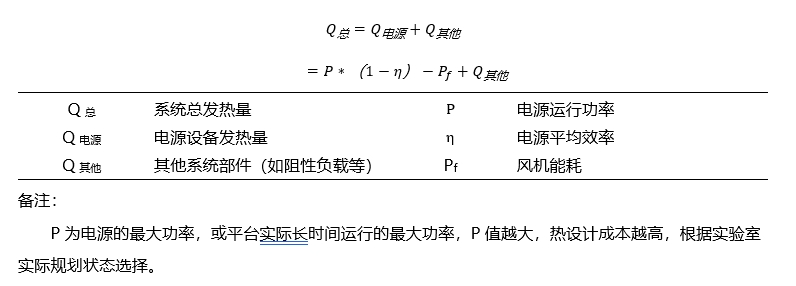 实验室发热主要包括电源损耗、其他发热器件损耗等。