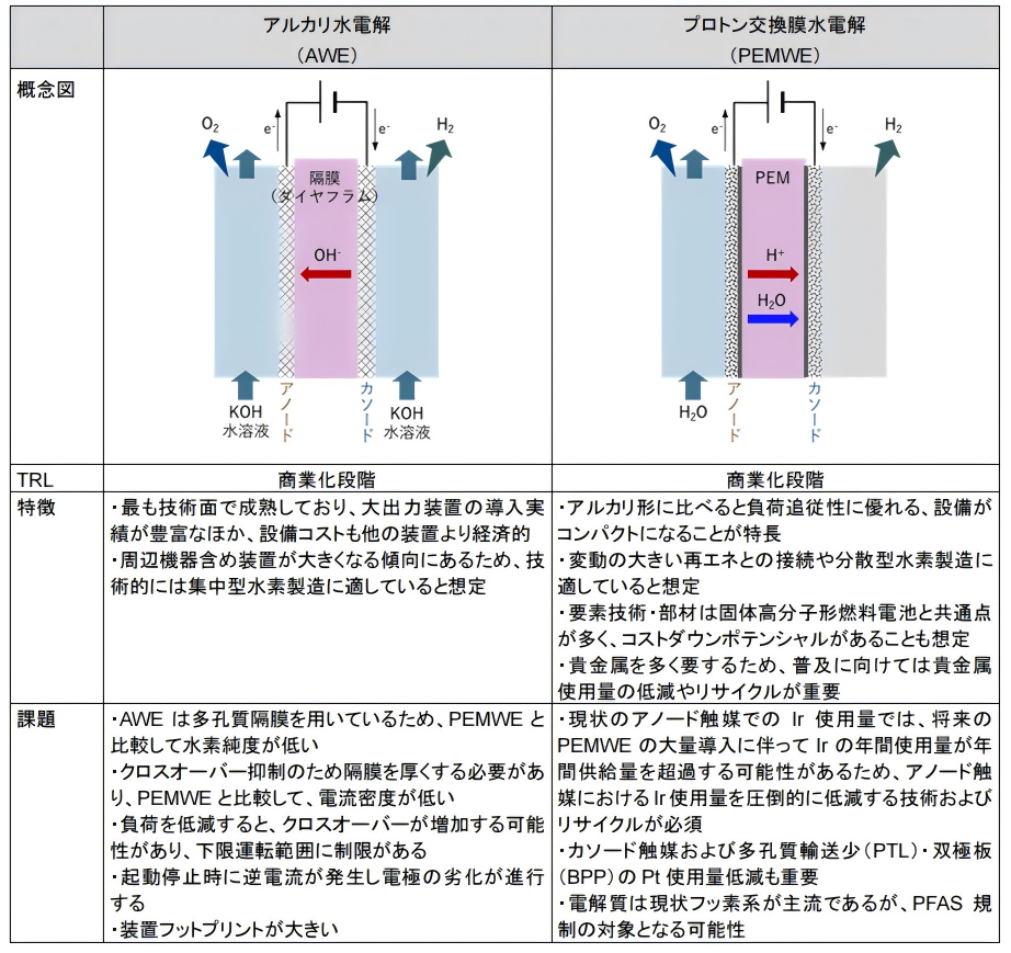表2-1水电解种类的特征(AWE·PEMWE)