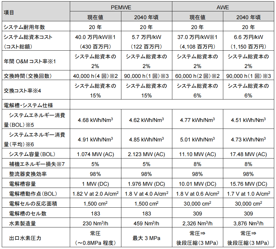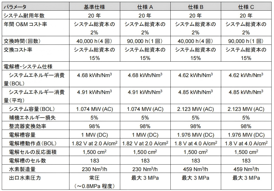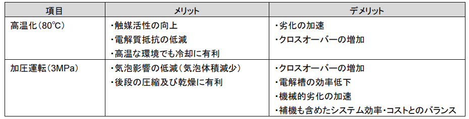 表1.5.3-3 提高水电解系统性能、耐久性的前提条件( AWE )