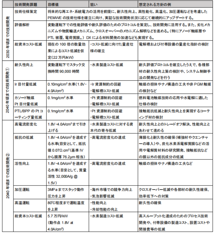 表2.2.6-2 PEMWE的技术开发项目和目标值